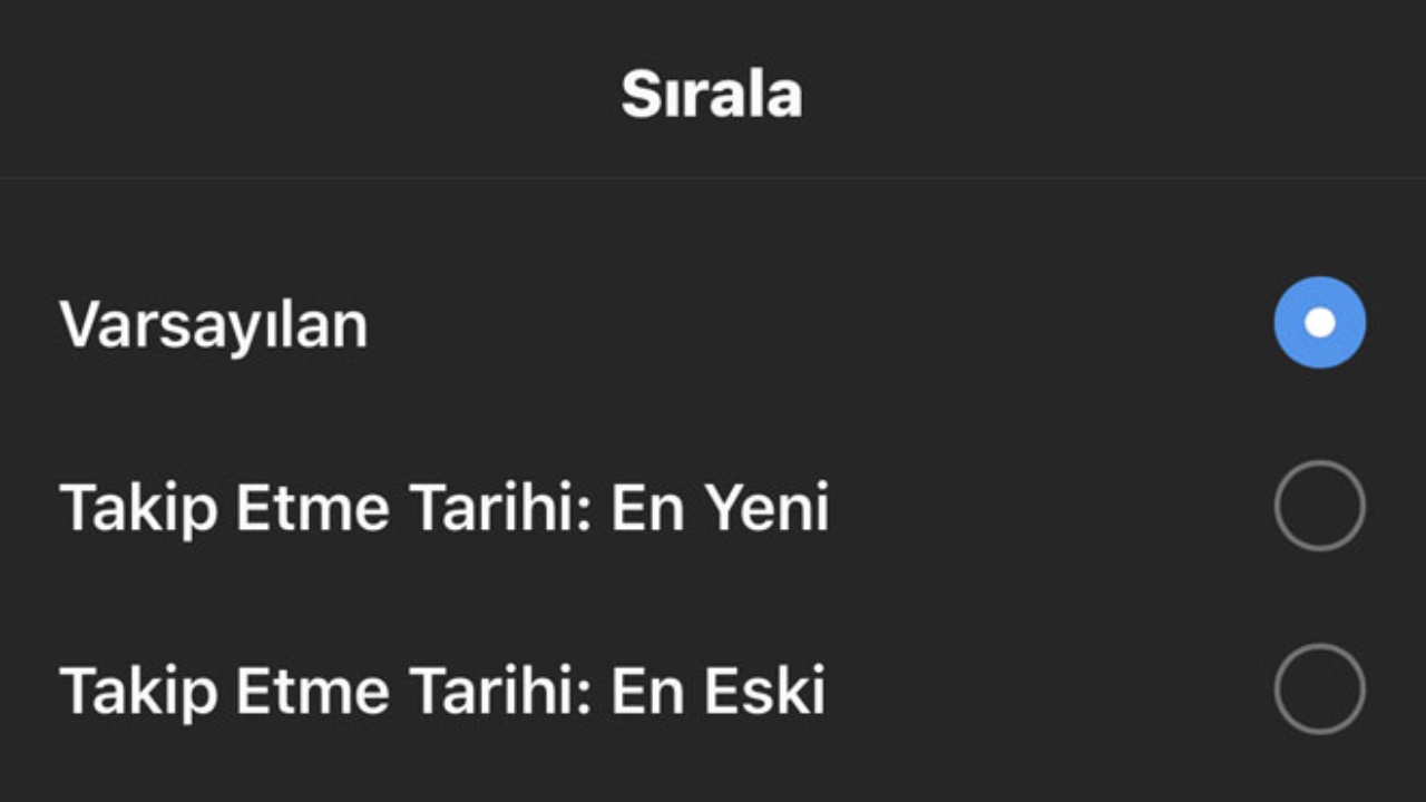 - En Eskiye Göre Sırala: Bu seçenekte ise, ilk takip ettiğiniz hesap en üstte olacak şekilde sıralanır. Bu sayede Instagram’da ilk kimi takip ettiğinizi öğrenebilirsiniz.